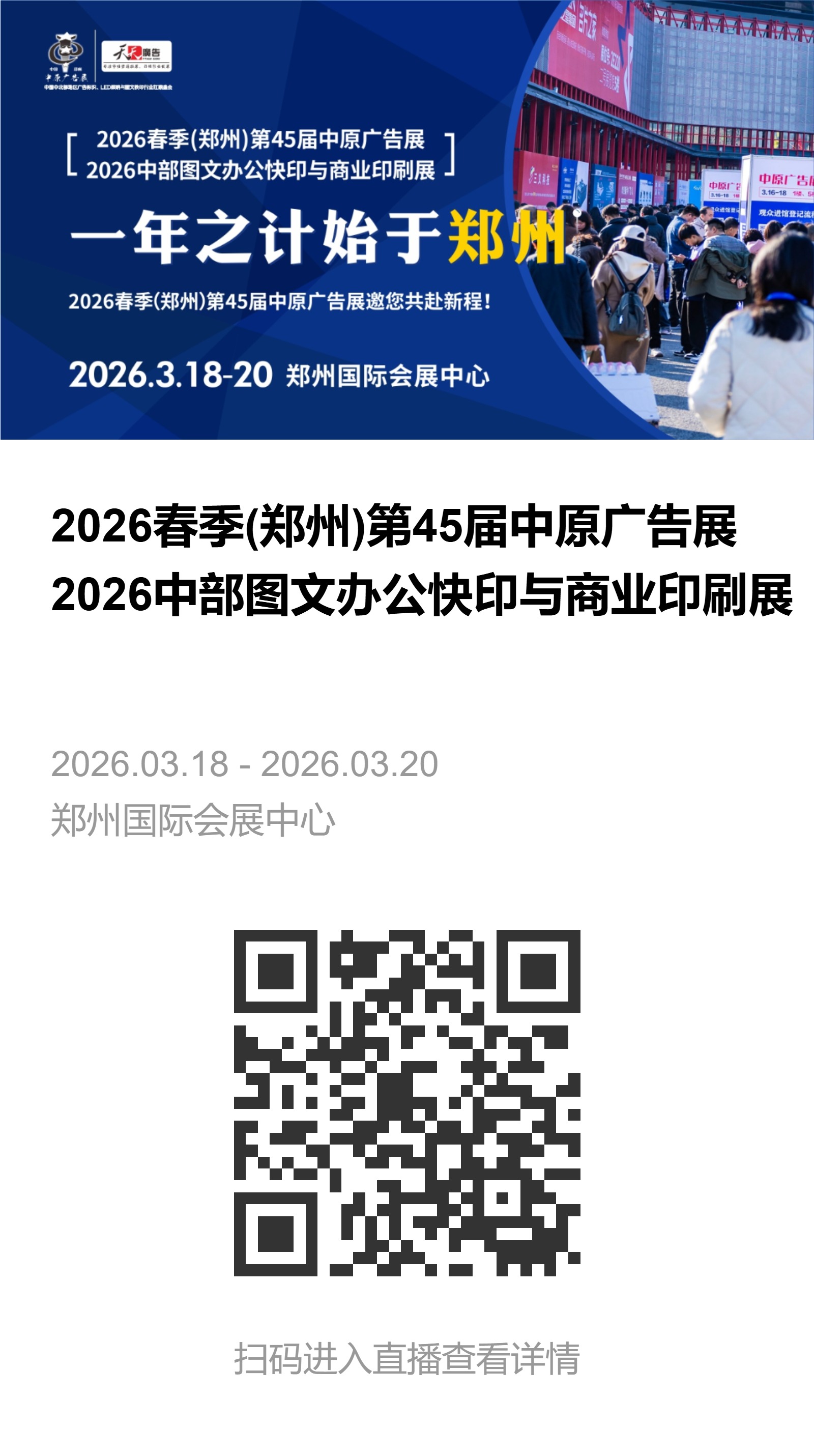 3月18日,2026春季(鄭州)第45屆中原廣告展在鄭州國(guó)際會(huì)展中心盛大啟幕,為期三天(3月18—20日)的行業(yè)盛宴正式拉開帷幕,同期聯(lián)動(dòng)2026中部圖文辦公快印與商業(yè)印刷展,以全產(chǎn)業(yè)鏈視角,為中部廣告行業(yè)奏響開年奮進(jìn)的號(hào)角。
